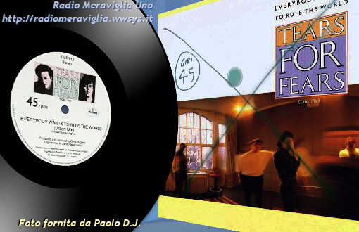 Gruppo: *Tears For Fears* - disco: *Everybody wants to rule the world*. In origine pensato con il titolo "Everybody Wants to Go to War", fu il settimo della carriera dei Tears for Fears ad entrare nell'aprile 1985 nella top ten britannica. Negli Stati Uniti "Everybody Wants to Rule the World" fu il primo singolo estratto dall'album "Songs from the Big Chair". L'8 giugno 1985 il singolo arrivò in vetta nella classifica statunitense Billboard Hot 100, per due settimane.